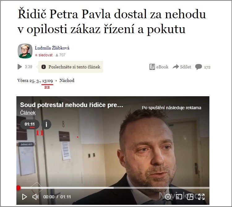 Dějová posloupnost má své logické pokračování. Komunikační kanály se už musí úplně přehřívat. Zatím to vypadá, že BÍLÉ a ČERVENÉ elity v české kotlině ještě nenašly finální shodu na společném způsobu ŘÍZENÍ našeho území. Nedávný vzkaz ve formě zablokování účasti českého prezidenta na summitu NATO, Pavel na summit NATO nepojede, řekl Babiš. Prezident o tom nic neví [8], má další pokračování. Novinky napsaly, že Řidič Petra Pavla dostal za nehodu v opilosti zákaz řízení a pokutu [9]: