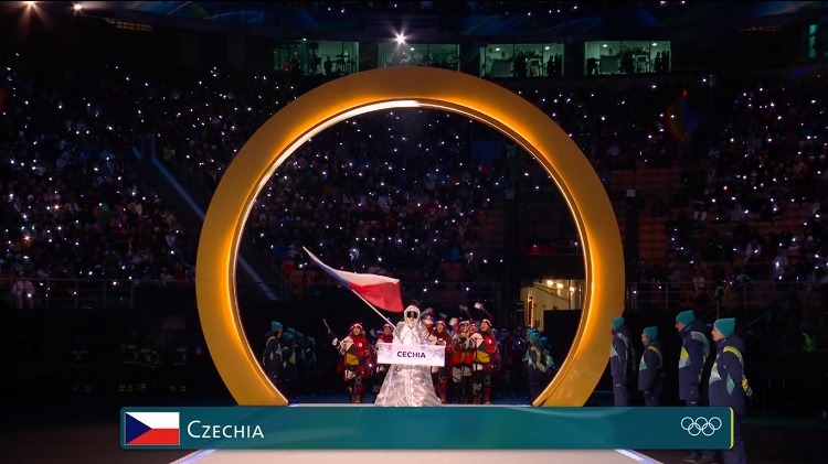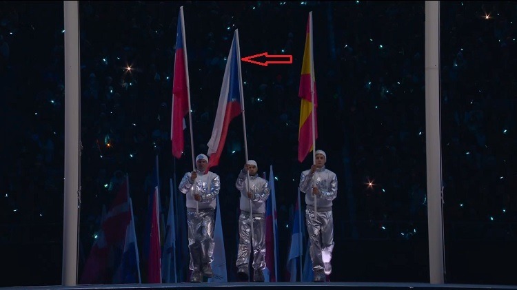 Pří nástupu všech „vlajek“ účastnících se zemí byla v nejdominantnější pozici vlajka České republiky!